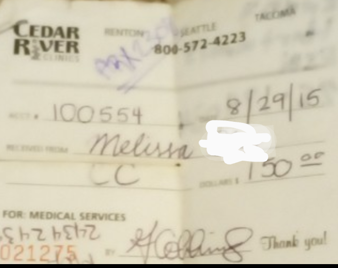 Cedar River clinic receipt 8-29-2015 conspiracy