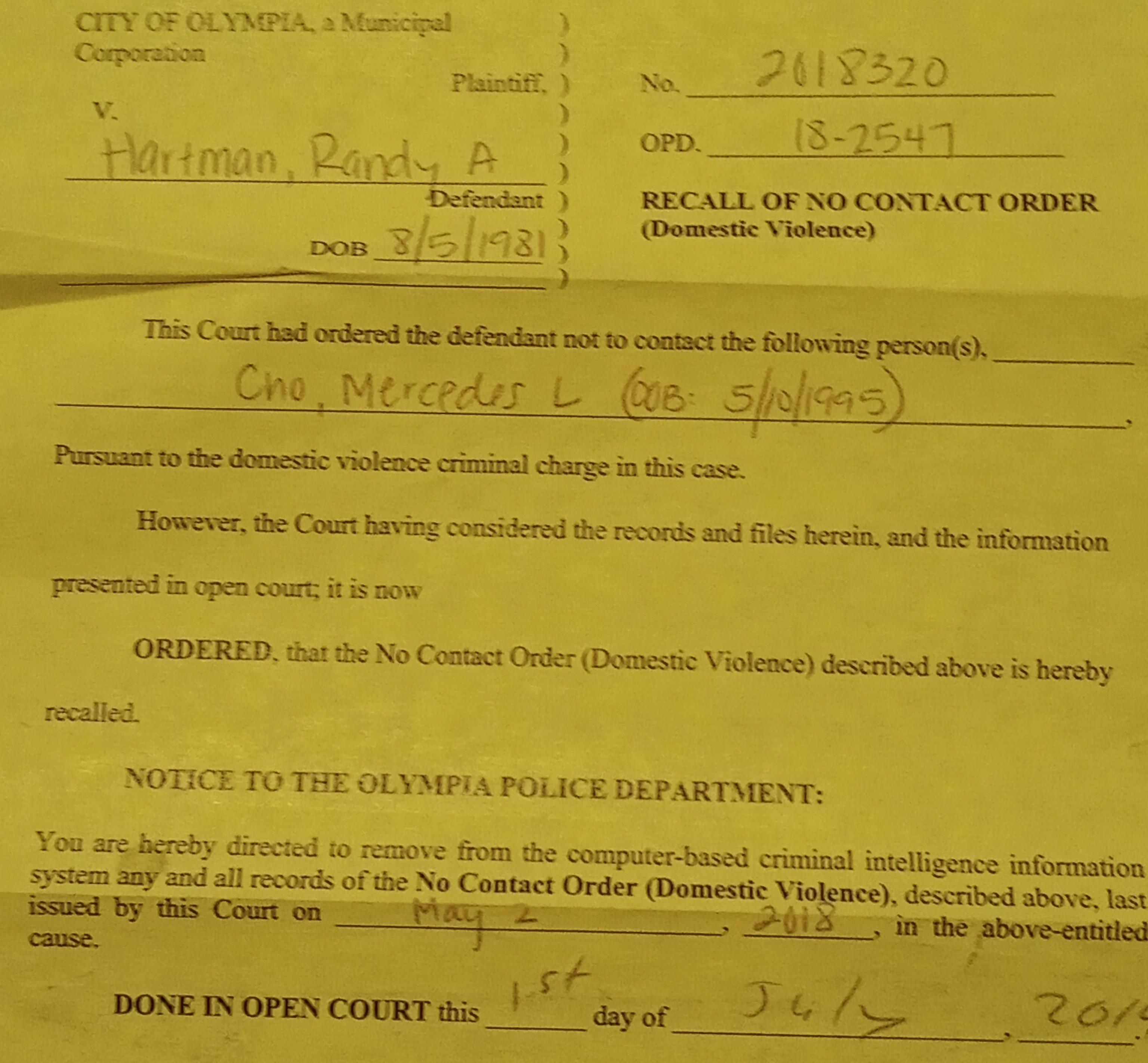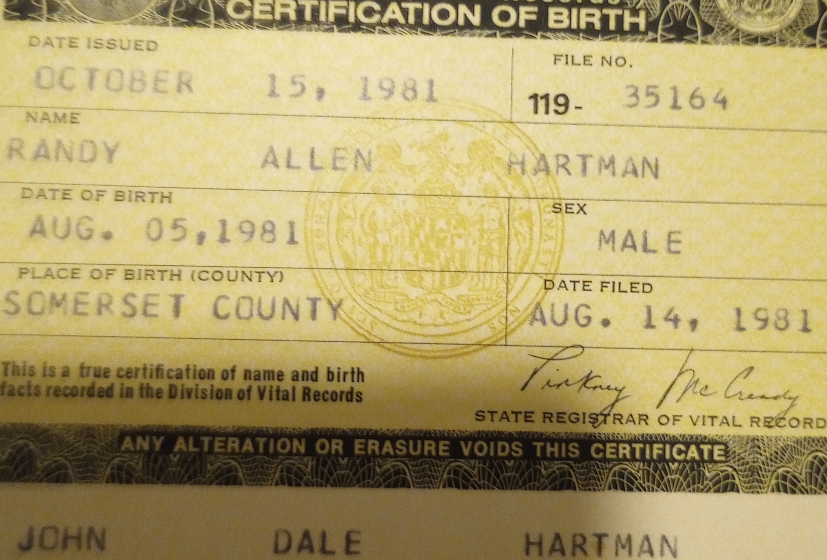 randy hartman's birth certificate